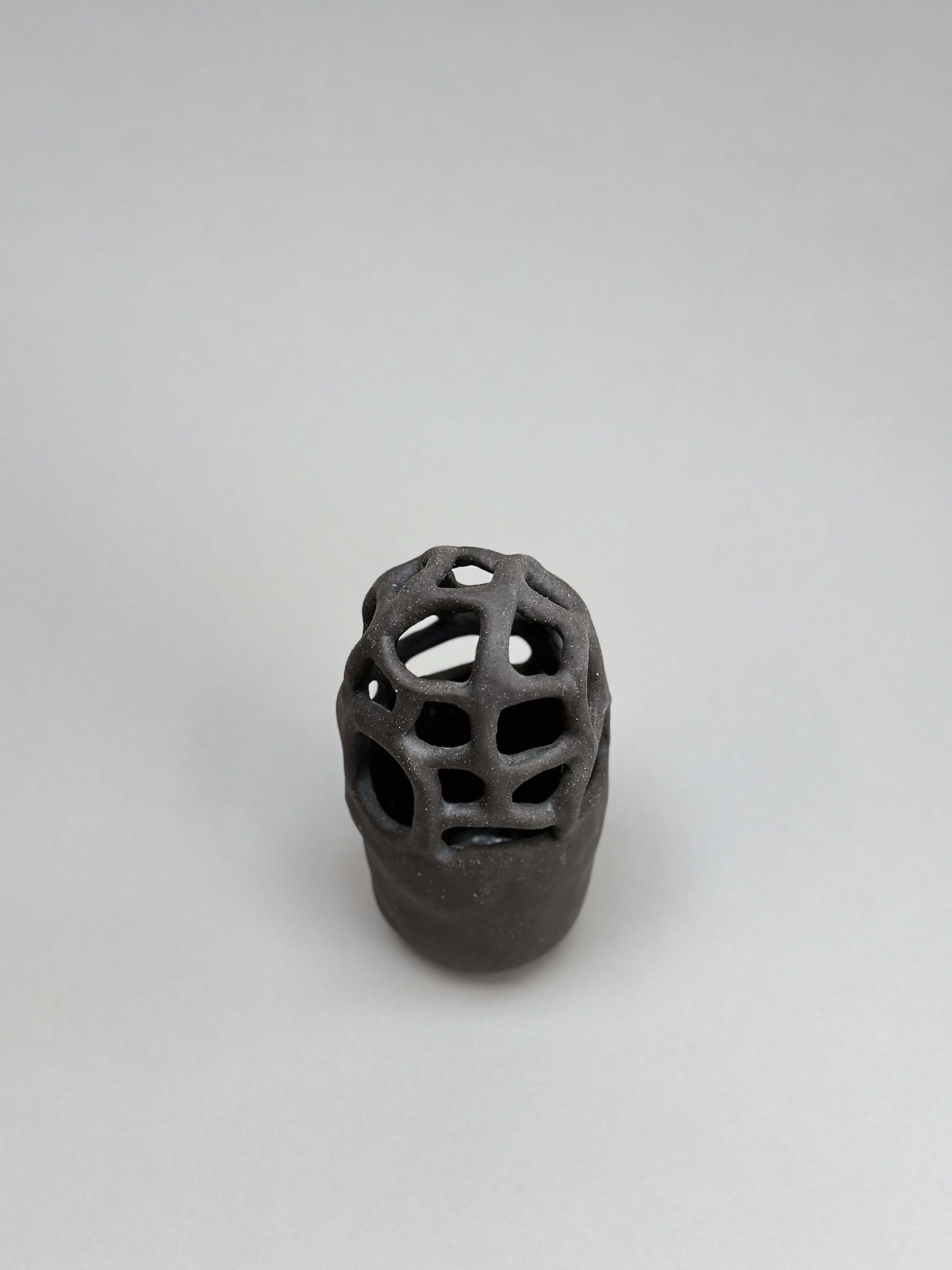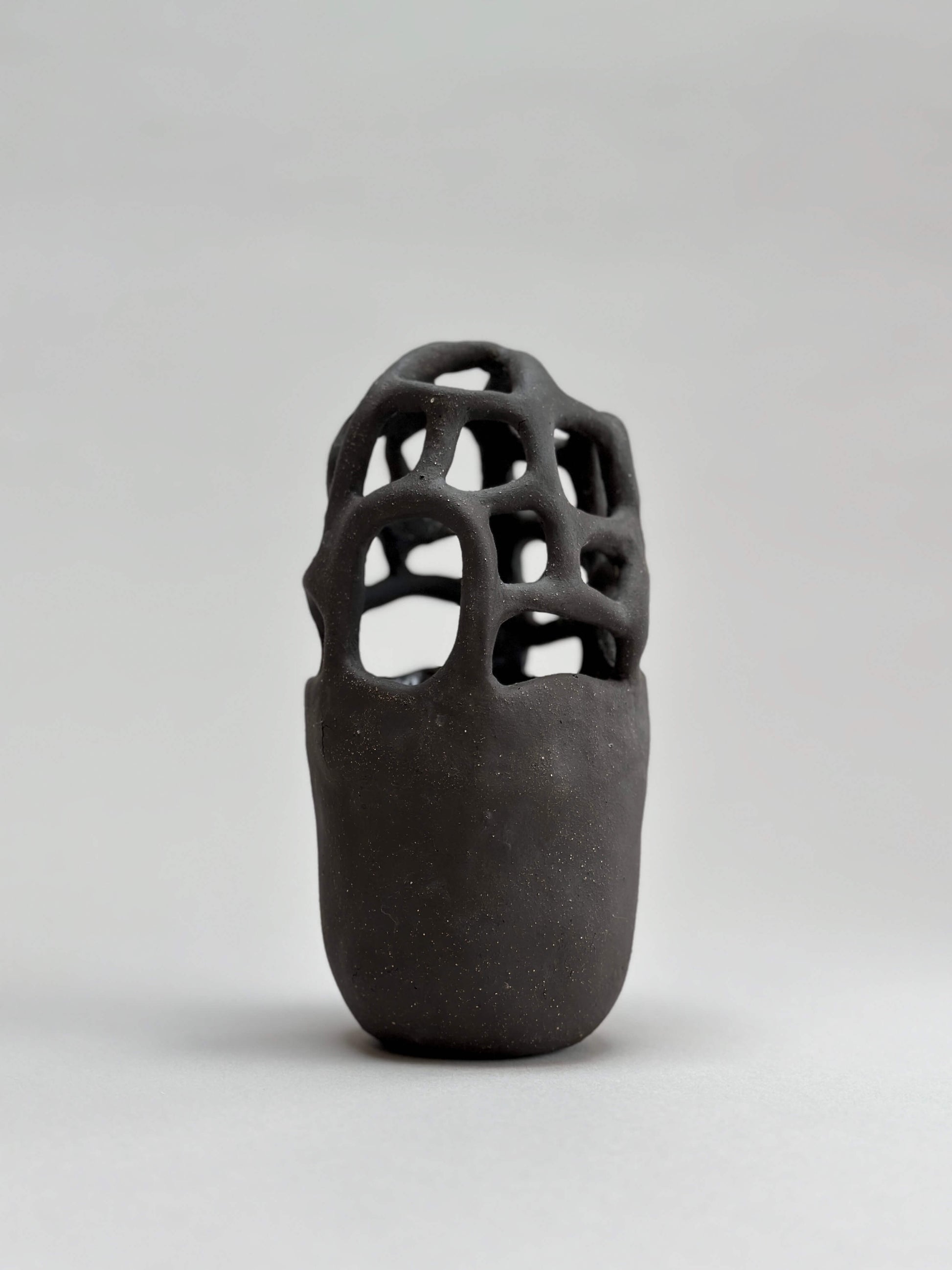 Sculpted black clay vase; Inspired by ikebana (Japanese art of floral arrangement)