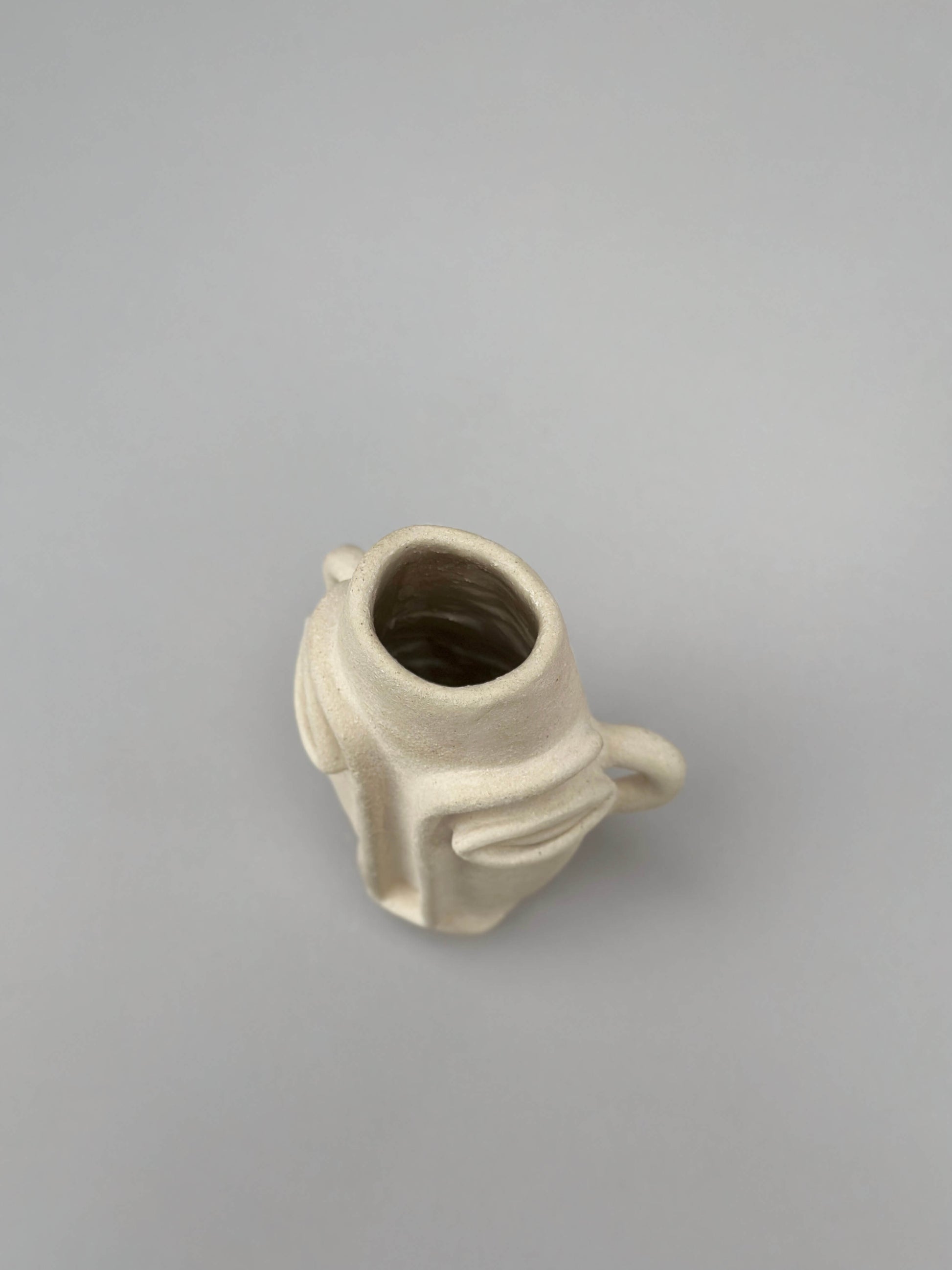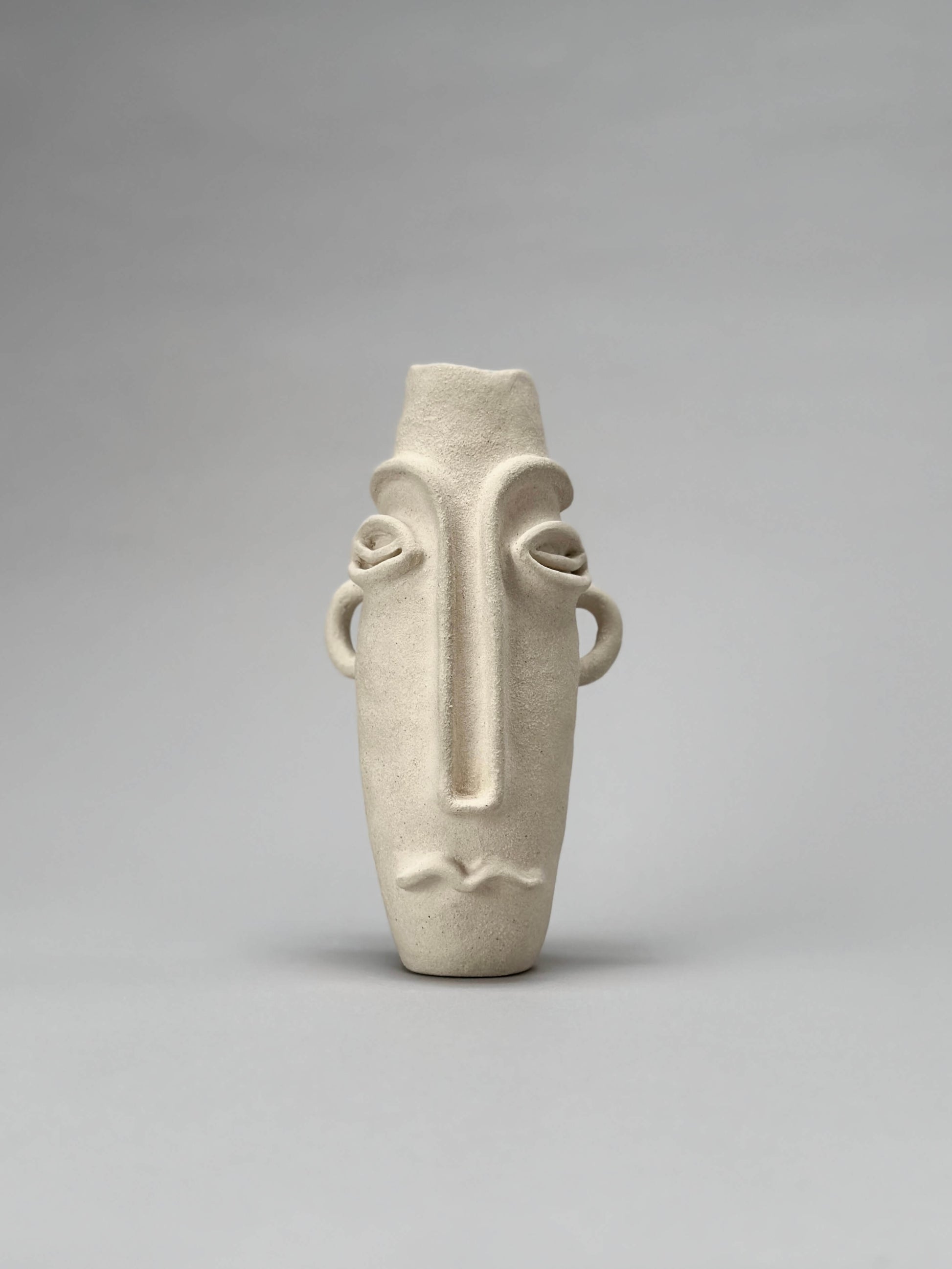 Sculpted buff clay vase; Inspired by artist’s Cuban heritage along with African tribal mask shapes